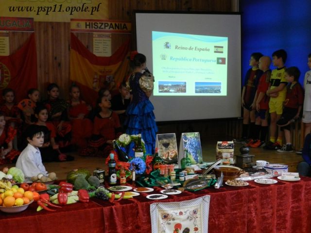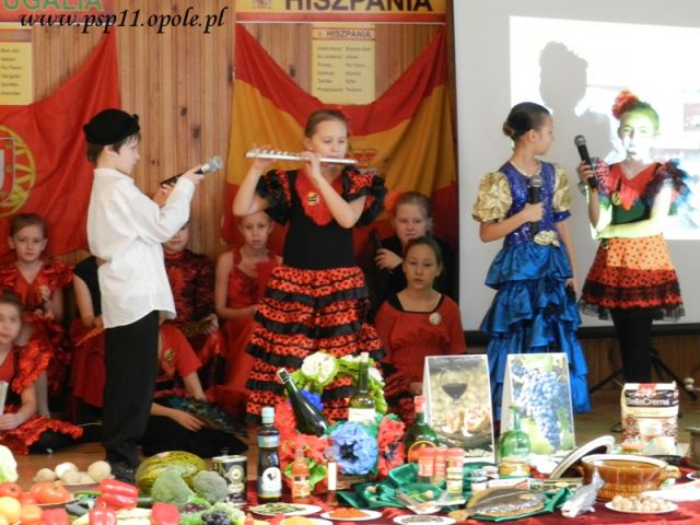 27 lutego 2013r. klasy II b i III a z wychowawczyniami Dorotą Polak i Dagmarą Draguć przygotowały wystawę dotyczącą hasła roku „Tajemnice kuchni świata”. Tym razem można było przenieść się na półwysep iberyjski do słonecznych: Hiszpanii i Portugalii. Uczniowie mogli poznać charakterystyczne potrawy oraz produkty z których się je przygotowuje. Dzieci przebrane za kucharzy prezentowały popularne w jadłospisie warzywa, ryby, owoce morza, mięso, wędliny, przyprawy, oliwę z oliwek, kawę. Wystawie towarzyszyły pokazy tańca flamenco z kastanietami oraz nostalgiczna muzyka fado.