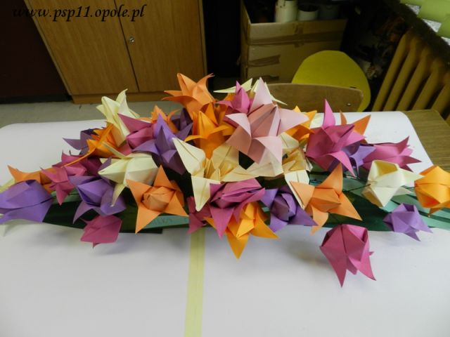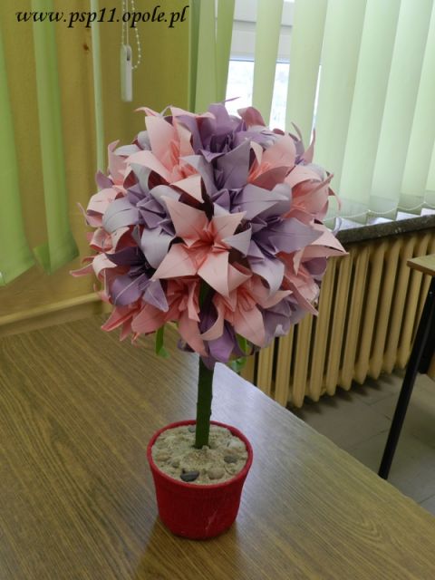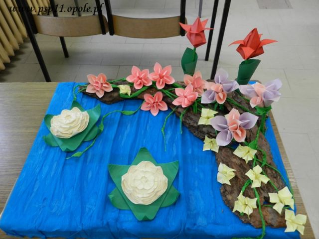 Uczniowie klas I-VI wykonali prace na Międzyszkolny Konkurs Orgiami pt .” Ikebany i bukiety” . Zgodnie z regulaminem konkursu do kolejnego etapu wybrano 3 prace ; Marysi Szatny kl IIa, Emilii Futkowskiej zkl. IVb oraz Natalii Szarejko z IVa.