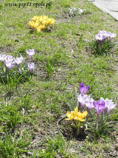 Przed szkoła wreszcie zakwitły krokusy. Czekaliśmy na nie z utęsknieniem, wiedząc, że są pierwszymi zwiastunami długo oczekiwanej w tym roku wiosny. Nareszcie zrobiło się cieplej, więc i w przyrodzie wiele zmian i wszystko budzi się do życia.