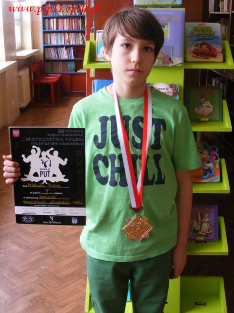 Michał Dulik zajął I miejsce w konkurencji technik specjalnych młodzików wOtwartych Mistrzostwach Polski Polskiej Unii Taekwondo.
