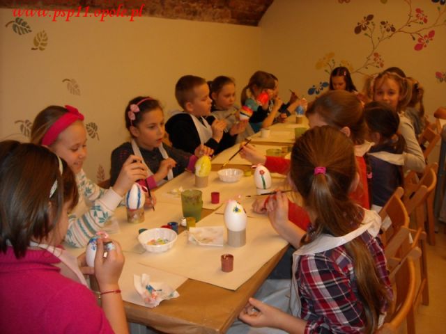 To już druga wizyta klasy II a w Muzeum Śląska Opolskiego. 19 marca 2013r. klasa II a uczestniczyła w zajęciach edukacyjnych o tematyce wielkanocnej pt.: „Pisanka czy kroszonka...? - oto jest pytanie !”. Po prelekcji ilustrowanej prezentacją multimedialną dotyczącą świątecznych symboli i obrzędów, wszyscy ochoczo przystąpili do działań plastycznych. Poznane sposoby zdobienia jaj wykorzystali podczas malowania własnej pisanki. Każdy pomysłowo i ciekawie ozdobił otrzymane jajko. Na pewno będzie ono ładną ozdobą wielkanocnego stołu.