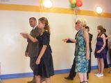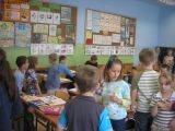 W piątek ok. godz. 10.00 zostali powitani w szkole zgodnie z polską tradycją chlebem i solą. Oficjalne przywitanie przez dyr. szkoły J. Cieslińskiego i przez radną i przew. komisji edukacji M. Kawałko odbyło się w szkolnej auli i poprzedzało występ artystyczny naszych uczniów. Następnie goście zostali zaproszeni do zwiedzania szkoły. Odwiedzili klasy, w których uczniowie obdarowali każdego własnoręcznie wykonanym prezentem.