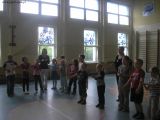 Po obradach udaliśmy się na boisko, na pożegnalne spotkanie, w którym brali udział wszyscy goście i nauczyciele. Przy obfitym poczęstunku odbyły się artystyczne prezentacje państw, połączone wspólnymi tańcami i śpiewem.