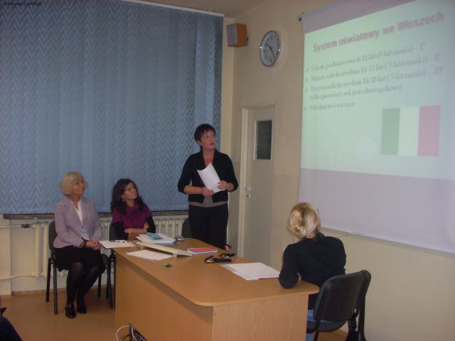 Katarzyna Dmochowska -zastepca koordynatora, przygotowała prezentację multimedialną dotyczącą systemów edukacyjnych w państwach partnerskich oraz omówiła bieżące zdanaia dotyczące projektu.