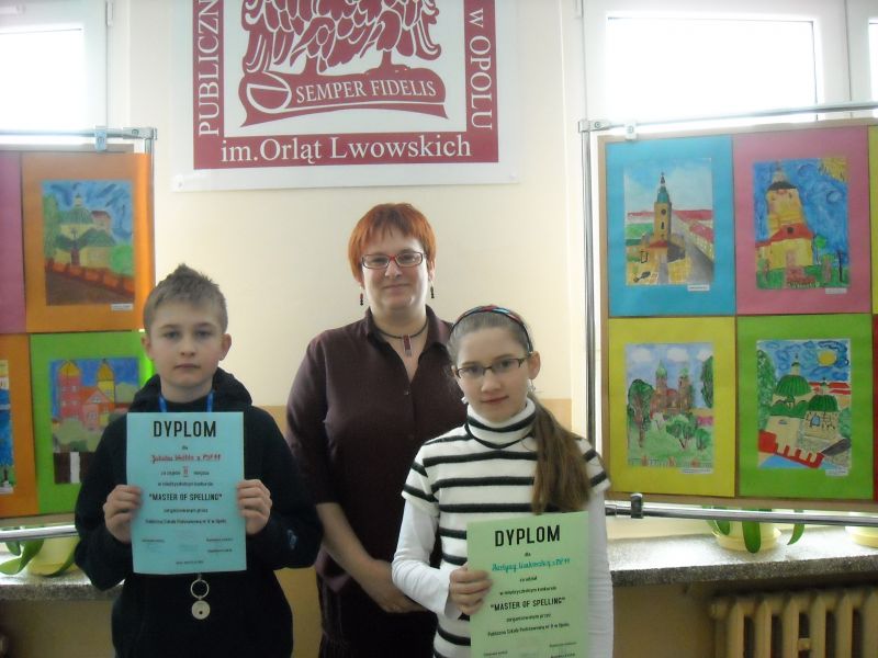 W dniu dzisiejszym uczniowie klas IV wzięli udział w konkursie języka angielskiego Master of Spelling organizowanym przez PSP nr 8 w Opolu. Laureatami eliminacji szkolnych zostali Martyna Cisakowska z kl. IV a oraz Jakub Wróbel z kl. IV b. W dzisiejszym finale konkursu sukces odniósł Jakub Wróbel, który zajął II miejsce w Opolu. Gratulujemy!