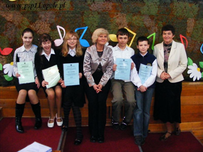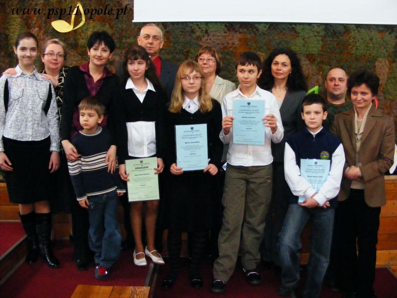 W sobotę, 28 marca, nasi laureaci wojewódzkich konkursów przedmiotowych uczestniczyli w uroczystym wręczeniu dyplomów i nagród, które odbyło się w PSP 29 w Opolu. Nagrodzeni zostali: Katarzyna Beker, Marta Czerwińska, Agnieszka Barbach, Marek Martynowicz, Michał Litwiniec. Nauczyciele przygotowujący uczniów to p. Anna Czaplińska i p. Maria Lisowska.