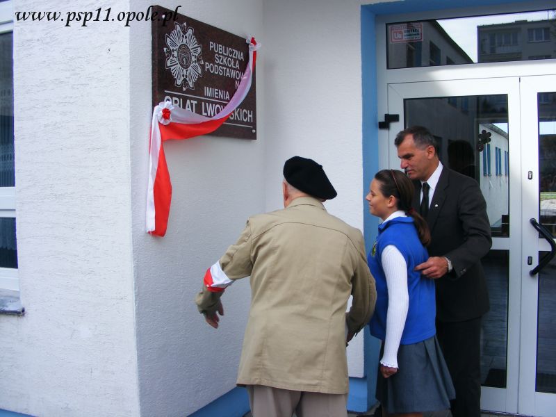 Uczniów, rodziców, nauczycieli i zaproszonych gości przywitała wicedyrektor szkoły pani Anna Czaplińska. W uroczystości brali również udział przedstawiciele Prezydium Towarzystwa Miłośników Lwowa i Kresów Południowo - Wschodnich. Prezes Towarzystwa pan Zdzisław Kuhl wraz z uczniami przeciął biało-czerwoną wstęgę, odsłaniając pamiatkową tablicę.
