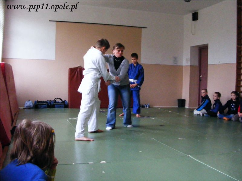 Dzisiaj odbyło się kolejne spotkanie z absolwentem naszej szkoły. Tym razem gościliśmy mistrzynię Polski, dwukrotną medalistkę mistrzostw Europy w judo Panią Annę Chodakowską. Spotkanie to odbyło się w małej salce gimnastycznej, gdzie pani Anna mogła pokazać kilka chwytów i rzutów wykorzystując umiejętności Bartka Pysznego i Tomka Wilka, którzy trenują tę dyscyplinę sportu już od kilku lat. Uczniowie z klasy I c, którzy byli organizatorami tego spotkania wraz ze swoją wychowawczynią panią Małgorzatą Lach zadawali mnóstwo pytań, prosili o wpis do kroniki szkolnej, i pokazali kronikę z lat szkolnych pani Anny.